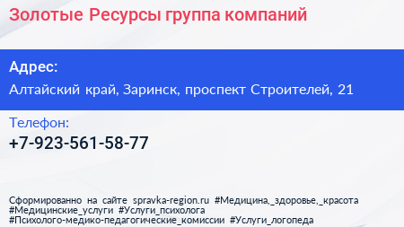 Золотые Ресурсы, группа компаний по адресу Алтайский край, Заринск, проспект Строителей, 21 в дальнейшем Организация, размещена в следующих категориях: