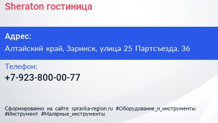 Sheraton, гостиница по адресу Алтайский край, Заринск, улица 25 Партсъезда, 36 в дальнейшем Организация, размещена в следующих категориях: