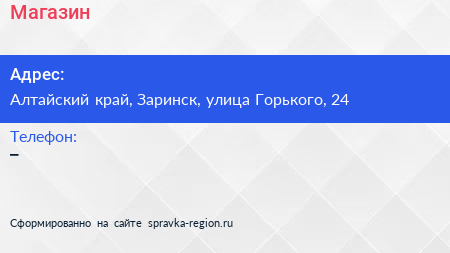 Магазин по адресу Алтайский край, Заринск, улица Горького, 24 в дальнейшем Организация, размещена в следующих категориях: