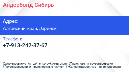 Андерболд-Сибирь по адресу Алтайский край, Заринск, в дальнейшем Организация, размещена в следующих категориях: