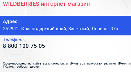 WILDBERRIES, интернет-магазин по адресу 352942, Краснодарский край, Заветный, Ленина, 37а в дальнейшем Организация, размещена в следующих категориях:
