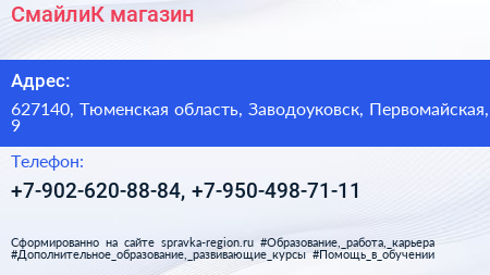 СмайлиК, магазин по адресу 627140, Тюменская область, Заводоуковск, Первомайская, 9 в дальнейшем Организация, размещена в следующих категориях: