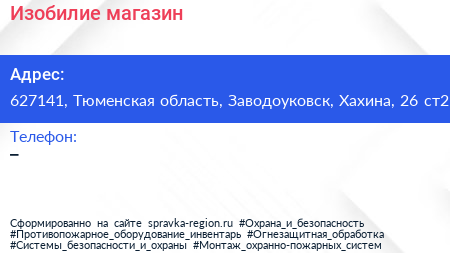 Изобилие, магазин по адресу 627141, Тюменская область, Заводоуковск, Хахина, 26 ст2 в дальнейшем Организация, размещена в следующих категориях: