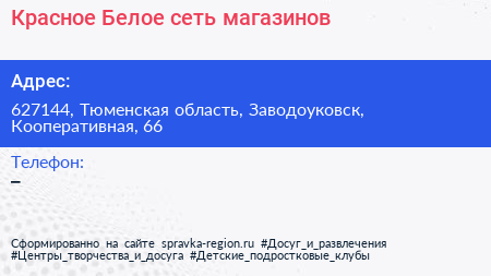 Красное & Белое, сеть магазинов по адресу 627144, Тюменская область, Заводоуковск, Кооперативная, 66 в дальнейшем Организация, размещена в следующих категориях: