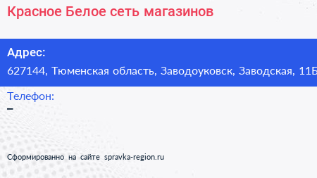 Красное & Белое, сеть магазинов по адресу 627144, Тюменская область, Заводоуковск, Заводская, 11Б в дальнейшем Организация, размещена в следующих категориях: