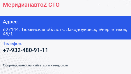 МеридианавтоZ, СТО по адресу 627144, Тюменская область, Заводоуковск, Энергетиков, 45/1 в дальнейшем Организация, размещена в следующих категориях: