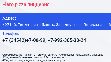 Fiero pizza, пиццерия по адресу 627140, Тюменская область, Заводоуковск, Вокзальная, 48 в дальнейшем Организация, размещена в следующих категориях: