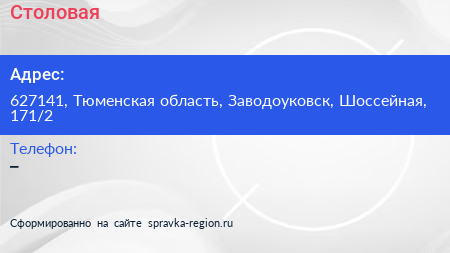 Столовая по адресу 627141, Тюменская область, Заводоуковск, Шоссейная, 171/2 в дальнейшем Организация, размещена в следующих категориях: