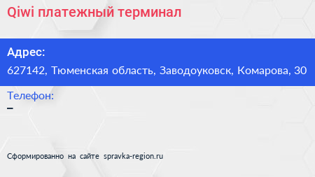 Qiwi, платежный терминал по адресу 627142, Тюменская область, Заводоуковск, Комарова, 30 в дальнейшем Организация, размещена в следующих категориях: