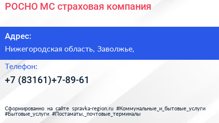 РОСНО-МС, страховая компания по адресу Нижегородская область, Заволжье, в дальнейшем Организация, размещена в следующих категориях: