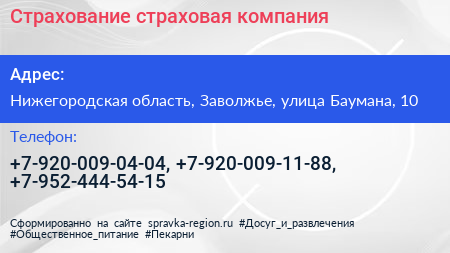 Страхование, страховая компания по адресу Нижегородская область, Заволжье, улица Баумана, 10 в дальнейшем Организация, размещена в следующих категориях: