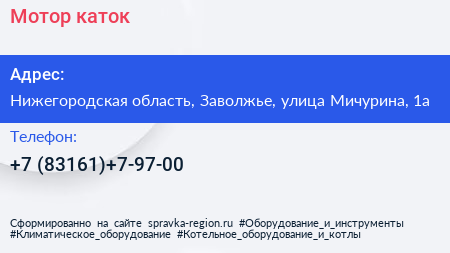 Мотор, каток по адресу Нижегородская область, Заволжье, улица Мичурина, 1а в дальнейшем Организация, размещена в следующих категориях: