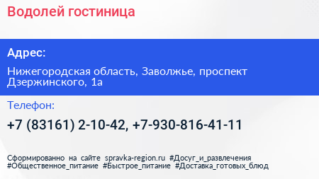 Водолей, гостиница по адресу Нижегородская область, Заволжье, проспект Дзержинского, 1а в дальнейшем Организация, размещена в следующих категориях: