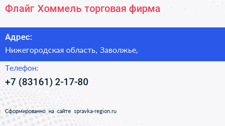 Флайг+Хоммель, торговая фирма по адресу Нижегородская область, Заволжье, в дальнейшем Организация, размещена в следующих категориях: