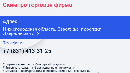 Скимпро, торговая фирма по адресу Нижегородская область, Заволжье, проспект Дзержинского, 2 в дальнейшем Организация, размещена в следующих категориях: