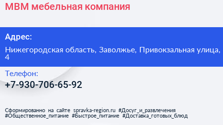 МВМ, мебельная компания по адресу Нижегородская область, Заволжье, Привокзальная улица, 4 в дальнейшем Организация, размещена в следующих категориях:
