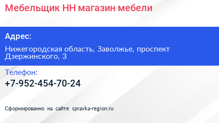Мебельщик-НН, магазин мебели по адресу Нижегородская область, Заволжье, проспект Дзержинского, 3 в дальнейшем Организация, размещена в следующих категориях: