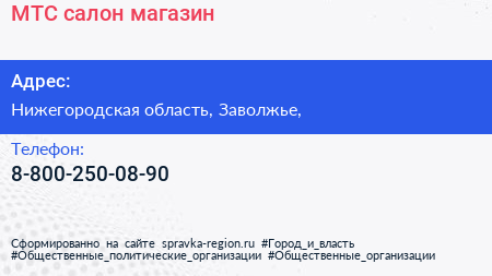 МТС, салон-магазин по адресу Нижегородская область, Заволжье, в дальнейшем Организация, размещена в следующих категориях: