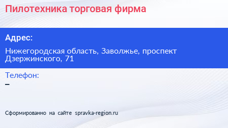 Пилотехника, торговая фирма по адресу Нижегородская область, Заволжье, проспект Дзержинского, 71 в дальнейшем Организация, размещена в следующих категориях: