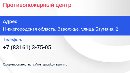 Противопожарный центр по адресу Нижегородская область, Заволжье, улица Баумана, 2 в дальнейшем Организация, размещена в следующих категориях: