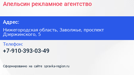 Апельсин, рекламное агентство по адресу Нижегородская область, Заволжье, проспект Дзержинского, 5 в дальнейшем Организация, размещена в следующих категориях: