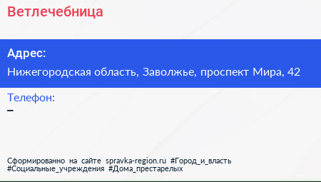 Ветлечебница по адресу Нижегородская область, Заволжье, проспект Мира, 42 в дальнейшем Организация, размещена в следующих категориях: