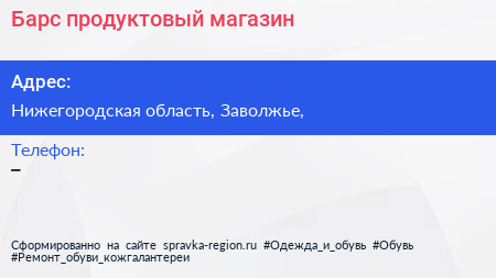 Барс, продуктовый магазин по адресу Нижегородская область, Заволжье, в дальнейшем Организация, размещена в следующих категориях: