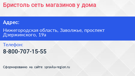 Бристоль, сеть магазинов у дома по адресу Нижегородская область, Заволжье, проспект Дзержинского, 19а в дальнейшем Организация, размещена в следующих категориях: