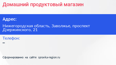 Домашний, продуктовый магазин по адресу Нижегородская область, Заволжье, проспект Дзержинского, 21 в дальнейшем Организация, размещена в следующих категориях: