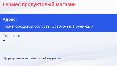 Гермес, продуктовый магазин по адресу Нижегородская область, Заволжье, Грунина, 7 в дальнейшем Организация, размещена в следующих категориях: