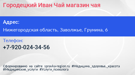 Городецкий Иван-Чай, магазин чая по адресу Нижегородская область, Заволжье, Грунина, 6 в дальнейшем Организация, размещена в следующих категориях: