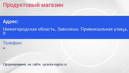 Продуктовый магазин по адресу Нижегородская область, Заволжье, Привокзальная улица, 9 в дальнейшем Организация, размещена в следующих категориях: