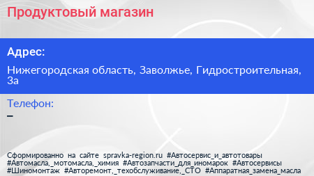 Продуктовый магазин по адресу Нижегородская область, Заволжье, Гидростроительная, 3а в дальнейшем Организация, размещена в следующих категориях: