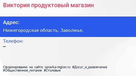 Виктория, продуктовый магазин по адресу Нижегородская область, Заволжье, в дальнейшем Организация, размещена в следующих категориях: