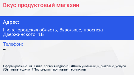 Вкус, продуктовый магазин по адресу Нижегородская область, Заволжье, проспект Дзержинского, 1Б в дальнейшем Организация, размещена в следующих категориях: