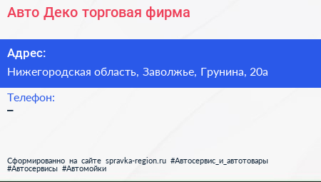 Авто-Деко, торговая фирма по адресу Нижегородская область, Заволжье, Грунина, 20а в дальнейшем Организация, размещена в следующих категориях: