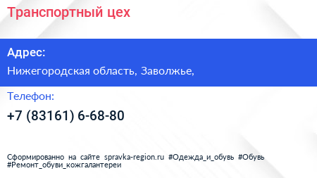 Транспортный цех по адресу Нижегородская область, Заволжье, в дальнейшем Организация, размещена в следующих категориях: