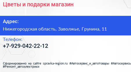 Цветы и подарки, магазин по адресу Нижегородская область, Заволжье, Грунина, 11 в дальнейшем Организация, размещена в следующих категориях: