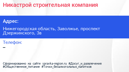 Никастрой, строительная компания по адресу Нижегородская область, Заволжье, проспект Дзержинского, 3в в дальнейшем Организация, размещена в следующих категориях: