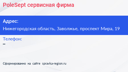 PoleSept, сервисная фирма по адресу Нижегородская область, Заволжье, проспект Мира, 19 в дальнейшем Организация, размещена в следующих категориях: