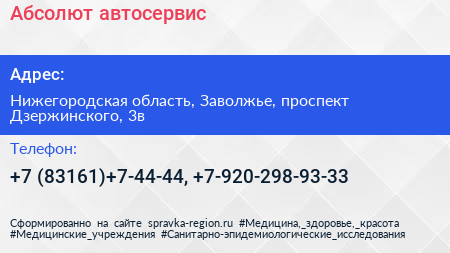 Абсолют, автосервис по адресу Нижегородская область, Заволжье, проспект Дзержинского, 3в в дальнейшем Организация, размещена в следующих категориях: