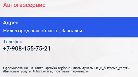 Автогазсервис по адресу Нижегородская область, Заволжье, в дальнейшем Организация, размещена в следующих категориях: