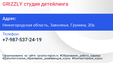 GRIZZLY, студия детейлинга по адресу Нижегородская область, Заволжье, Грунина, 20а в дальнейшем Организация, размещена в следующих категориях: