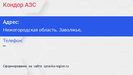 Кондор, АЗС по адресу Нижегородская область, Заволжье, в дальнейшем Организация, размещена в следующих категориях:
