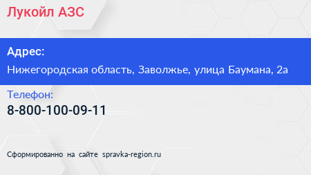 Лукойл, АЗС по адресу Нижегородская область, Заволжье, улица Баумана, 2а в дальнейшем Организация, размещена в следующих категориях: