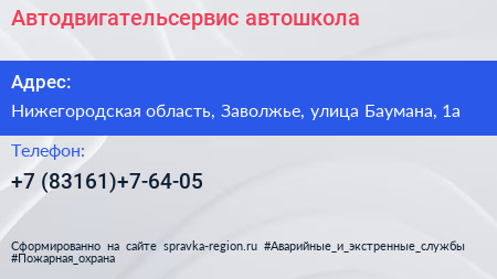 Автодвигательсервис, автошкола по адресу Нижегородская область, Заволжье, улица Баумана, 1а в дальнейшем Организация, размещена в следующих категориях: