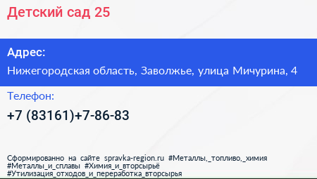 Детский сад №25 по адресу Нижегородская область, Заволжье, улица Мичурина, 4 в дальнейшем Организация, размещена в следующих категориях: