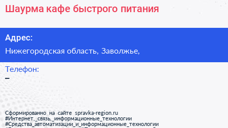 Шаурма, кафе быстрого питания по адресу Нижегородская область, Заволжье, в дальнейшем Организация, размещена в следующих категориях: