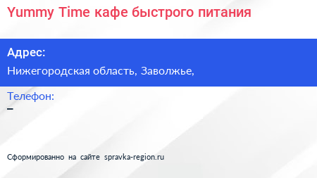 Yummy Time, кафе быстрого питания по адресу Нижегородская область, Заволжье, в дальнейшем Организация, размещена в следующих категориях: