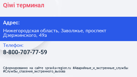 Qiwi, терминал по адресу Нижегородская область, Заволжье, проспект Дзержинского, 49а в дальнейшем Организация, размещена в следующих категориях: